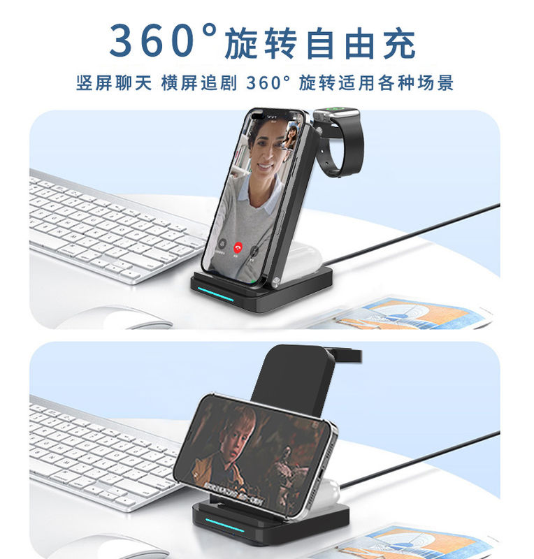 En resumen, este cargador inalámbrico 3 en 1 con su diseño único, integración multifuncional, flexibilidad conveniente, seguridad y estabilidad, y amplia compatibilidad y otras características, proporciona a los usuarios una experiencia de carga eficiente, conveniente y segura. Ya sea un usuario individual o un usuario comercial, puede obtener una solución de carga que satisfaga sus necesidades.